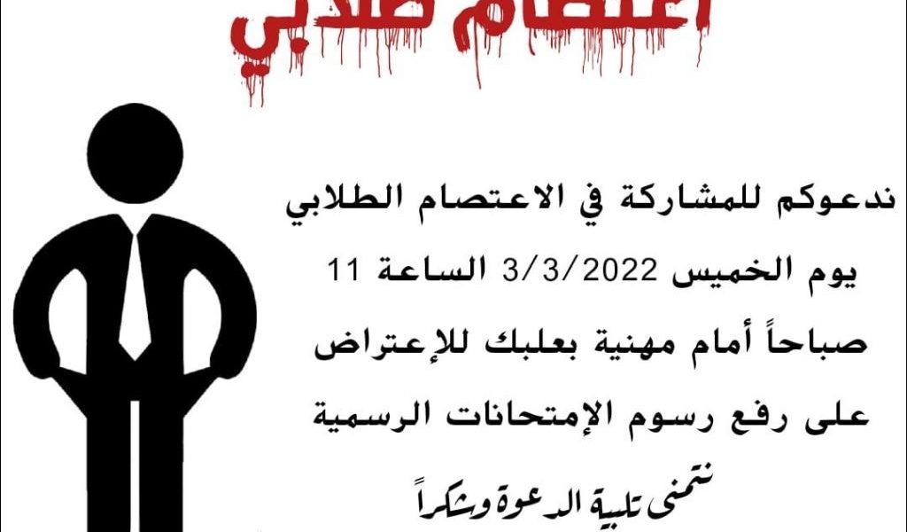 اعتصام لطلاب المهني اعتراضاً على رفع رسوم الامتحانات الرسمية .