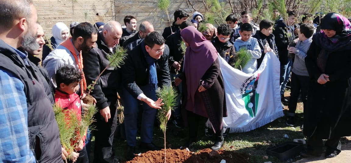 حملة تشجير حديقة صنوبر في حرم ثانوية الشيخ محمد يعقوب التربوية برعاية وزير الزراعة الدكتور عباس الحاج حسن .
