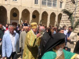 وفي كنيسة سيدة النجاة في زحلة ترأس راعي ابرشية زحلة للروم الملكيين الكاثوليك المطران ابراهيم ابراهيم قداس احد الشعانين عاونه في القداس آباء الرعية .
