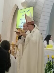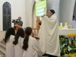 وتراس الاب طوني حدشيتي قداس الفصح المجيد في كنيسة سيدة المعونات للموارنة في بعلبك.