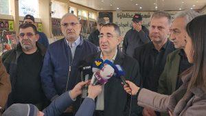 وموضوع قصف المعابر الحدودية اليوم كان وزير الاشغال موجود على منطقة المصنع وسيعاد فتح كل الخطوط وكل ما تضرر وكل النازحين سيعودون من سوريا بالتعاون مع الدول وسيكون لكل شخص منزل ومأوى يليق به ويليق بتضحياته .