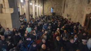 فتوجه بالسلام والتحية لاهل غزة الصامدين والصابرين ،وقال اليوم افطرنا على الطعام والشراب واهل غزة افطروا على الدموع والدماء ولبسوا الاكفان كبارا وصغارا رجالا ونساءا وهم يعانون حصارا اقتصاديا وحصارا انسانيا ،لانهم يريدون منكم ان تصلوا الى اليأس لكن لا مكان لليأس