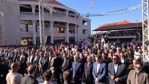 واضاف حجازي اننا مع الدولة التي تهتم بالمناطق المحرومة في عكار والبقاع وشمالي لبنان ،الدولة التي النازحين السوريين ،وإعادة اللبنانيين الذين هُجروا من على الحدود اللبنانية لأنه لا يجوز ان يُترك ٣٠ الف مواطن بحجة ترسيم الحدود الدولية ،الدولة التي تعمل على انتاج قانون انتخاب جديد ينتج وطنيين وليس طائفيين ،نريد دولة تتبنى فكرة الدولة المدنية لانها حاجة ،الدولة التى تدعو لحوار وطني حقيقي واستراتيجية دفاعية تحفظ حقوق لبنان والرئيس عون قادر على لعب دور وطني ولبنان لا يمكن ان يتخلى عن مقاومته وسلاح المقاومة .
