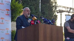 واضاف اجرينا نقاش مستفيض للوصول الى خيارات ،سنعلن عنها ،اما فكرة الاستسلام والهروب والتخلي لا تشبهنا ،وعندما نرفع العلم اللبناني في احتفالاتنا ،فهذا هو علمنا ،وكنا شركاء بهذا العلم وما زلنا شركاء وسنبقى شركاء ، ولنا الشرف بذلك ،اما ان تستهدف منازلنا وتستهدف مقراتنا ويسقط لنا شهداء،فهذا شرف لنا وحسمنا امرنا بتغيير أسم حزبنا وسيكون هذا اعلان نهائي ،واذا غيرنا الاسم لن نغير الانتماء ،سنبقى حلفاء للمقاومة وحزب الله وأمل والفصائل الوطنية والفلسطينية ،لن نبدل ولن نغير سنعطي لانفسنا هامشا في اللعبة الداخلية اللبنانية ننادي ببناء الدولة الوطنية العادلة القادرة ،اقله بوقف الاحتلال واعادة الاعمار نريد الدولة التي لا تدمر القطاع الرسمي ،والتي لا تدمر الطبقة الفقيرة والمتوسطة ،نريد الدولة التي تعيد للناس اموالهم وحقوقهم مع تأكيدنا ان سلاح المقاومة هو حاجة مع تمسكنا بالسلاح الذي وحده يحمينا .