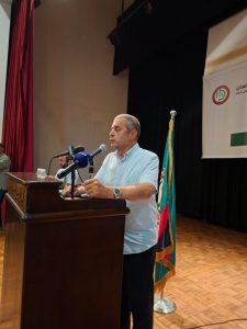كلمة تحدث فيها عن دور البلديات في التنمية والمهام الموكلة اليها في المرحلة الراهنة مستعرضا خطة عمل المكتب لتعزيز وترشيد العمل البلدي والاختياري .