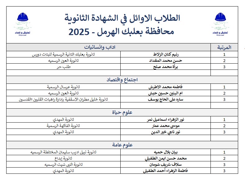 فيما يلي اسماء الطلاب المكرمين الأوائل .