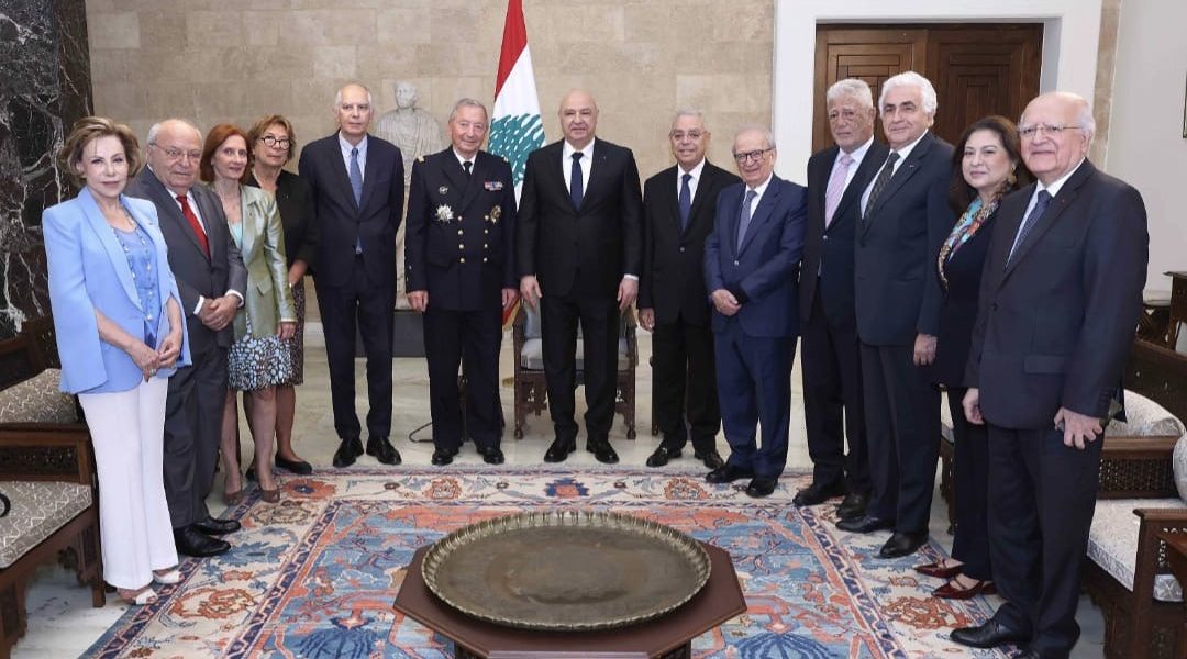 استقبل رئيس الجمهورية العماد جوزاف عون صباح اليوم في قصر بعبدا رئيس جمعية اعضاء جوقة الشرف Legion d’honneur الاميرال الفرنسي آلان كولديفي Alain Coldefy مع وفد ضم السيدة آن كولديفي والمسؤولة عن فروع الجمعية في العالم السفيرة كورين برويزيه بحضور السفير الفرنسي في لبنان هيرفيه مارغو ورئيس جمعية اعضاء جوقة الشرف في لبنان السفير خليل كرم وأعضاء الهيئة الادارية: نائب رئيس الجمعية الوزير السابق موريس صحناوي والنائب مروان حمادة والوزير السابق ناصيف حتي والاميرال منير رحيم والسيدتين ميريام انطاكي ولميا مبيض البساط والامين العام للجمعية رفيق شلالا.