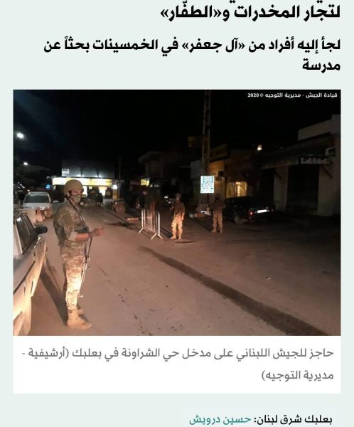 أضاءت اقتحامات الجيش اللبناني المتكررة لحي الشراونة في بعلبك في شرق لبنان، والعمليات الأمنية الأخيرة فيه، على هذا الحي الذي لجأ إليه كبار المطلوبين لتهم المخدرات، وإطلاق النار، وسرقة السيارات، والخطف مقابل فدية، وهو ما يُطلق على تسميتهم محلياً «الطفار»، أي الذين يفرون من الملاحقات، ولا يرتبطون بعنوان سكن محدد.