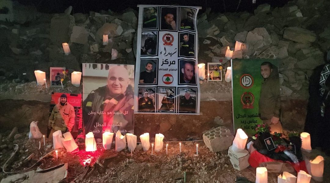 المديرية الاقليمية في الدفاع المدني والهيئة الصحية الاسلامية يحيون الذكرى السنوية الاولى لشهدائهم على ركام المبنى المدمر،