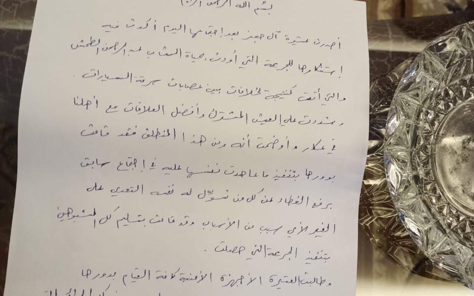 أكدت فيه إستنكارها للجريمة التي اودت بحياة الشاب عبد الرحمن الطحش والتي أتت كنتيجة لخلافات بين عصابات سرقة السيارات .