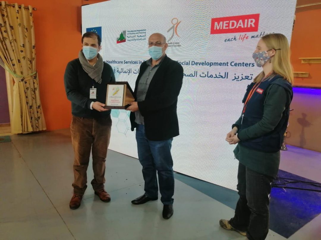 وفي الختام تسلم رئيس بلدية بريال سيارة الإسعاف كما قدم الدروع التقديرية لجمعية الدراسات ولميدير Medair.