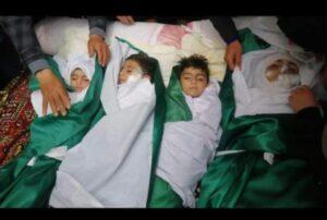 مَع الاشارة الى ان الأطفال الثلاثة، ناموا قريري الاعين في أحضان والدتهم الى مثواهم الاخير في حفرة واحدة.
