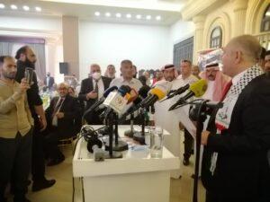 والقى الامين العام المساعد لاتحاد المحامين العرب معين غازي كلمة المحامين العرب أكد فيها على نصرة فلسطين والاقصى وغزة وبيت المقدس وقال