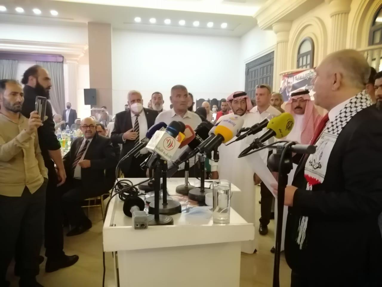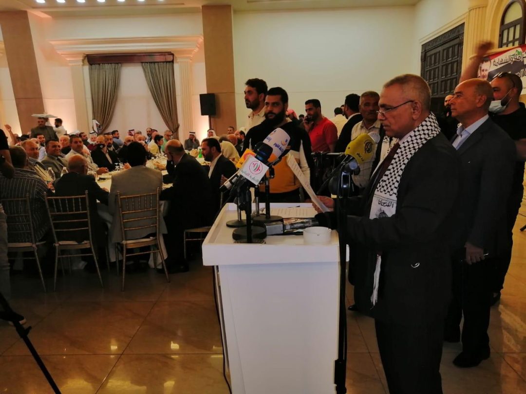 وكانت كلمة للعميد المتقاعد عمر معربوني نوه فيه بصمود الشعب الفلسطيني وانتصار غزة.