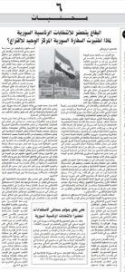 ويفيد المصدر ان حزب البعث العربي الاشتراكي على الرغم من وضعه السيء جدا الا ان كوادره ما زالت تتحرك على أكثر من منطقة من أجل مواكبة الاستحقاق لمواجهة الأصوات التي طالبت برحيل الرئيس الأسد بالاستحقاق الانتخابي، لتثبت للعالم اجمع ان الشعب السوري هو الوحيد الذي يحدد خيارات ورئيسه وبانه سيقول كلمته يوم الخميس في العشرين من الجاري الجاري.