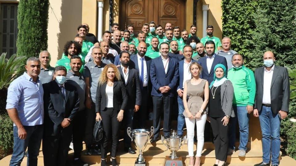 وفي الختام، التقط الرئيس الحريري الصور التذكارية مع الهيئة الإدارية للنادي وأعضاء الفريق.
