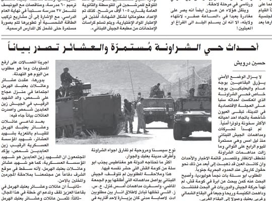 عادت الحياة الطبيعية الى حي الشراونة، بعلبك، بعد أربعة أيام من المداهمات والمطاردات والملاحقات، وحجب الهدؤ أصوات هدير المجنزرات والمصفحات وسيارات إلهامفي والآليات العسكرية، وغاب عنين ابواق سيارات الاسعاف التي كانت تجوب الشارع الرئيس للحي للتدخل عند كل طارىء. تنفس…